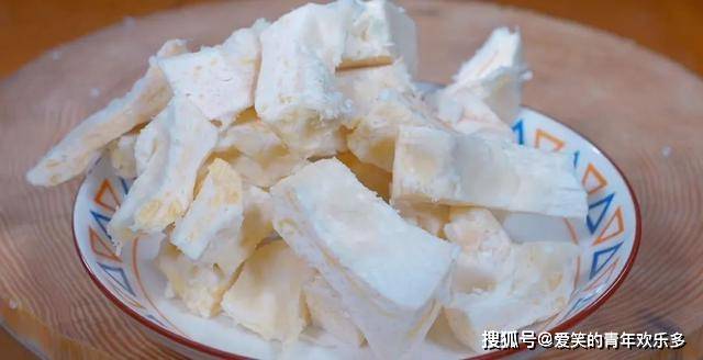 3.果壳不要扔掉,去外皮切去,切成小块装盘备用。