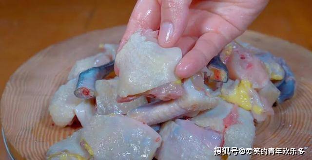 1.鸡肉处理好之后,用刀剁成块,因为炖制的时间较长,鸡肉会缩水,所以鸡肉尽量剁大块一些。
