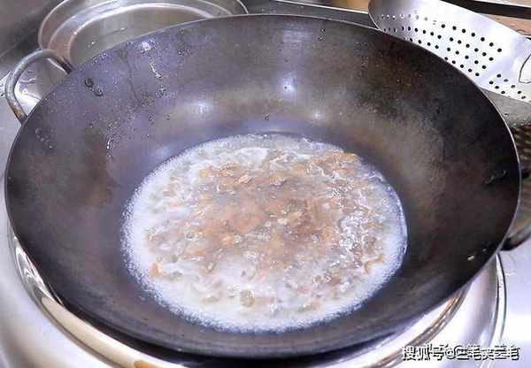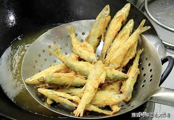 锅内烧油,油温五成热时,把小白条一个一个放入锅中,炸这种小鱼油温低的话,容易大量吸油,口感发腻,油温太高的话,又会出现表面焦糊,里面还不熟的现象,不停地晃动锅防止小白条粘在锅底,小白条飘起来之后,用勺子轻轻推动,让其均匀受热,全程开小火,炸3分钟,小白条炸熟、炸定型以后捞出。