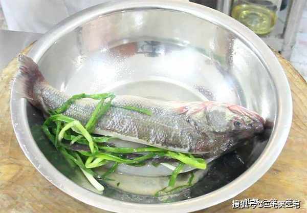 盆中加入适量的食盐、胡椒粉、料酒,均匀涂抹在鱼身上,准备几根小葱、几片姜片揉软塞进鱼肉内,腌制10分钟入味。