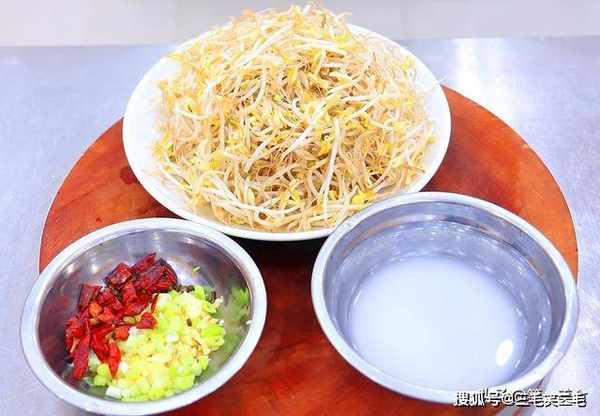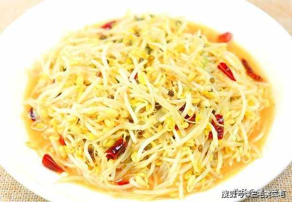 锅内烧油 ,油温五成热时,放入葱、姜、蒜、麻椒和干辣椒一起翻炒出香味,倒入绿豆芽,开大火快速炝炒30秒钟,把绿豆芽炒至断生,淋入准备好的料汁,翻炒入味以后即可出锅,一道清脆爽口的酸辣绿豆芽就做好了。