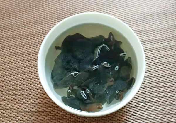(4)木耳用冷水浸泡,浸泡率高。热水浸泡率低,木耳吃起来弹性不够。如果想让木耳泡得快,可以加一点糖,然后盖上盖子,用力摇晃,一会儿就可以泡完了。