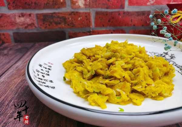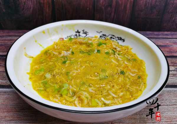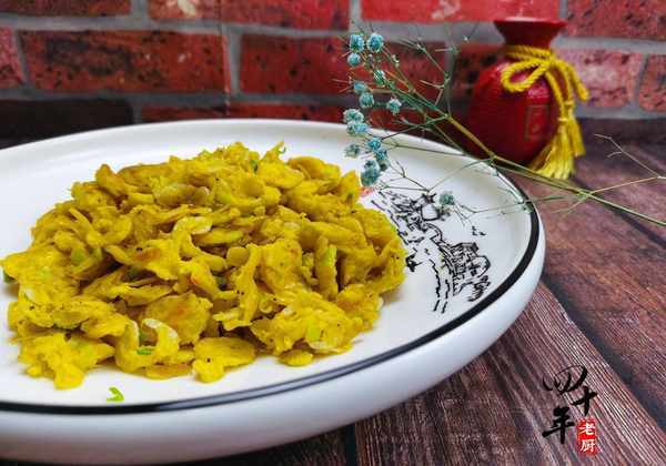 3.将铁锅放在炉子上煮半分钟,提高锅内温度。倒入30克植物油,抖动锅面,利用植物油的流动将锅面充分润湿。看到有少许油烟升起,立即倒入准备好的小葱和虾皮鹅蛋液,用手勺迅速撒散,翻炒至表面金黄,下鹅蛋、小葱和虾皮把皮从锅里拿出来,放在一个平板上。.媳妇怀孕了,婆婆常做这道菜,含钙量高,还能去胎毒,孙子生得漂亮。