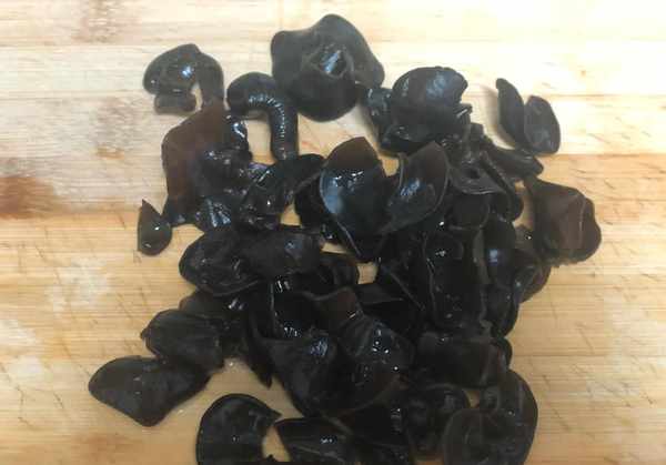 4、木耳提前用冷水浸泡,泡好后洗净去根,然后将木耳撕成小花。