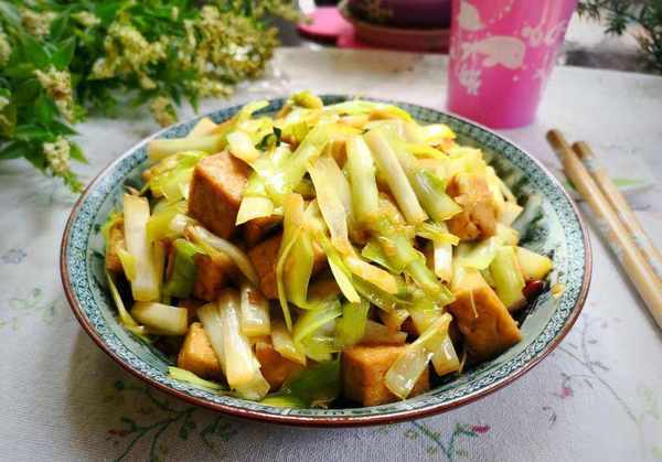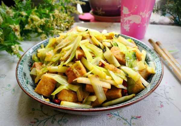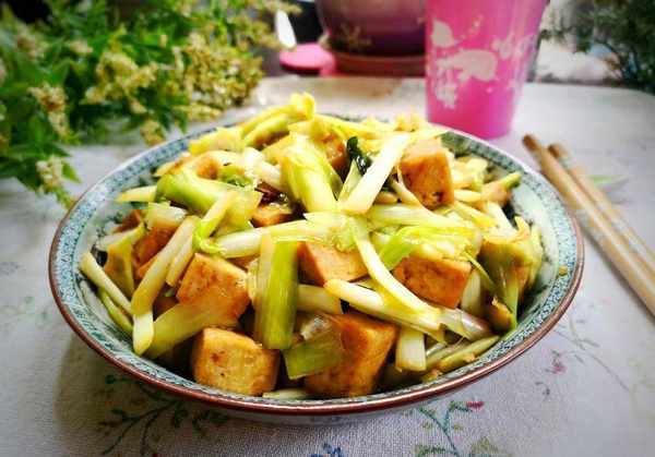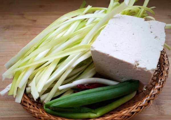 材料:韭菜、豆腐、红葱头、干辣椒、盐、酱油1匙、蚝油。