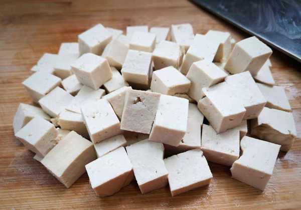 2、豆腐我买的是老豆腐,如果是水豆腐,也可以洗净切小块。