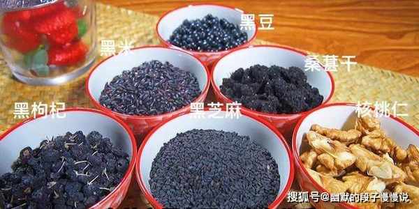 主要食材:黑芝麻、黑豆、黑米、桑葚干、黑枸杞、核桃仁