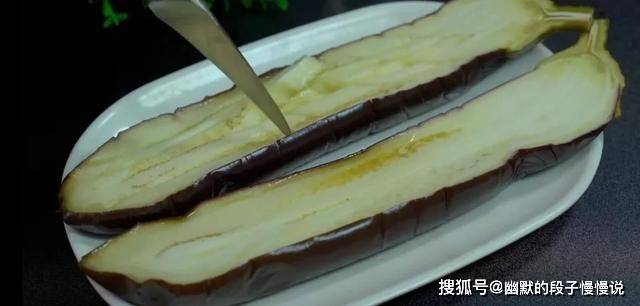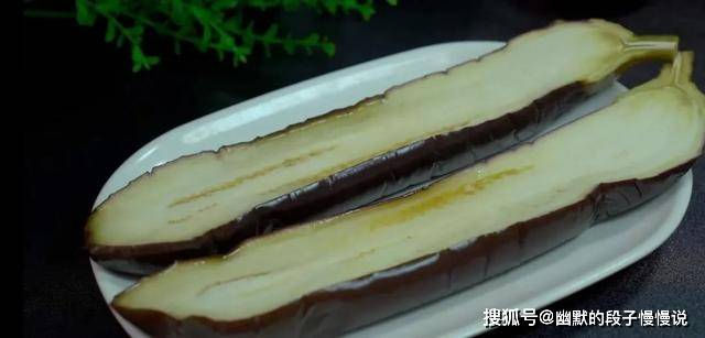 1.茄子洗净后不用去蒂,直接对半切开,装盘,放入蒸锅,水开上汽大火蒸5分钟。