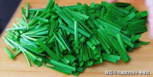 2.韭菜切成5厘米左右的小段。