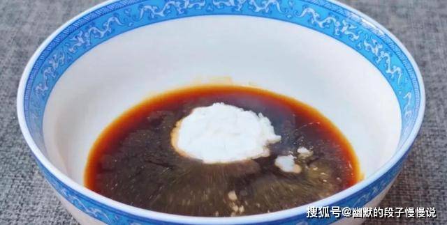 5.下面调一个碗汁,碗中依次放食盐、生抽、蚝油、白糖、鸡精、生粉、清水,搅匀备用。