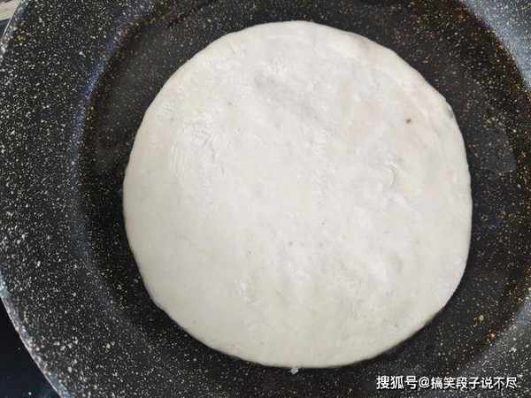 8、饼受热以后,会迅速鼓起来,这是正常现象,饼内部出现分层,越是这样越好吃,一直烙至两面金黄,即可出锅,整个过程也就几分钟,散发一股浓浓的饼香味。