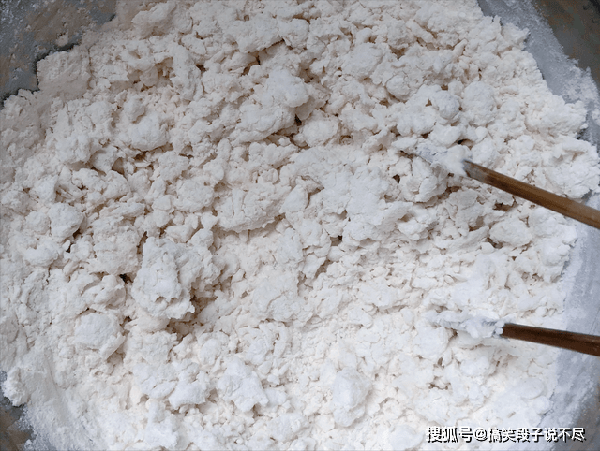 2、这样和面的方式,很适合死面大饼,凉了不会硬,口感还筋道,最后混合到一块,直到水分完全吸收,一斤面团能吸收350克左右的水分,面粉品牌不同,可能会有误差,上下浮动10克,问题都不大。