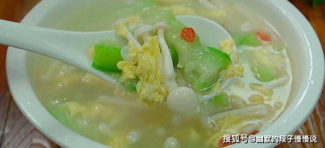 这道汤水清爽不油腻,喝起来很鲜美,里面有丝瓜、鸡蛋和白玉菇,既可以补钙,也可以补充维生素,在三伏天吃,清热降火,很适合中老年。