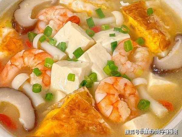 鸡蛋,虾仁,白玉菇,香菇,水豆腐,