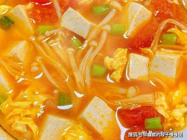 番茄,金针菇,水豆腐,鸡蛋,葱花,蒜末。