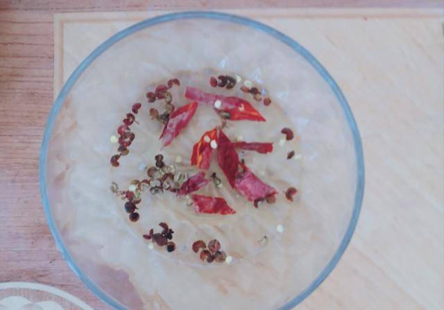 技巧一、花椒和干辣椒经水浸泡后可以将其表面的灰尘泡没,干辣椒也可以减少辣意。