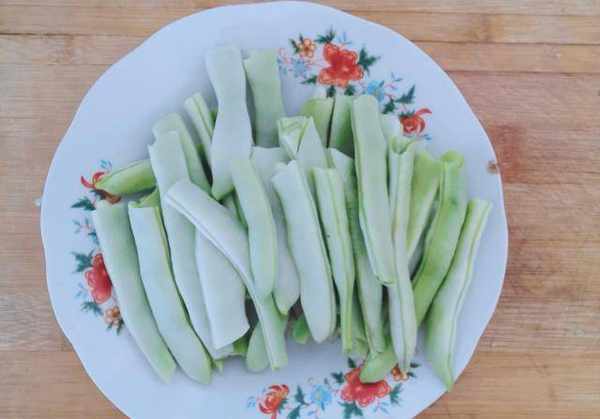 将豆角抽丝,掰成小段,不要太短,清洗干净,捞出沥干水分备用。