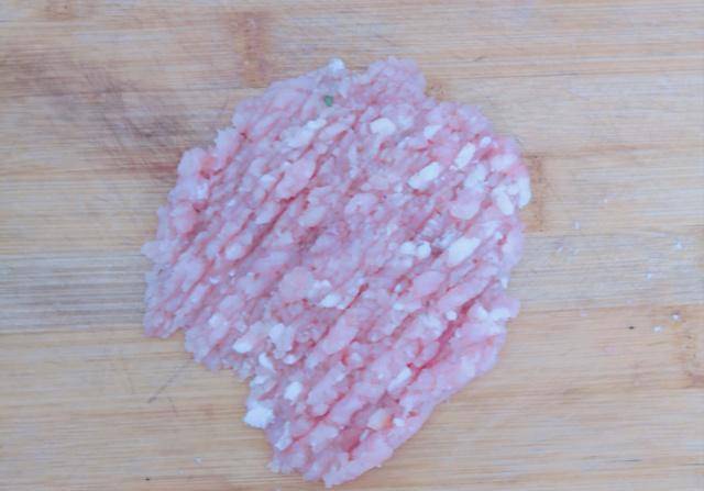 选一块瘦猪肉,先将它切成薄片,再将其剁成肉末状,盛入碗中备用。