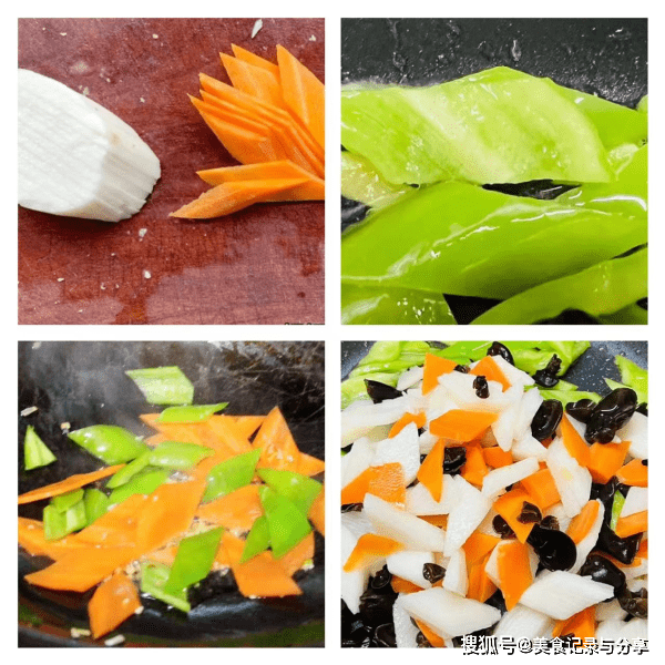 主要食材:山药、青椒、胡萝卜、蒜末、木耳、