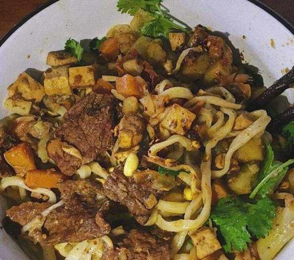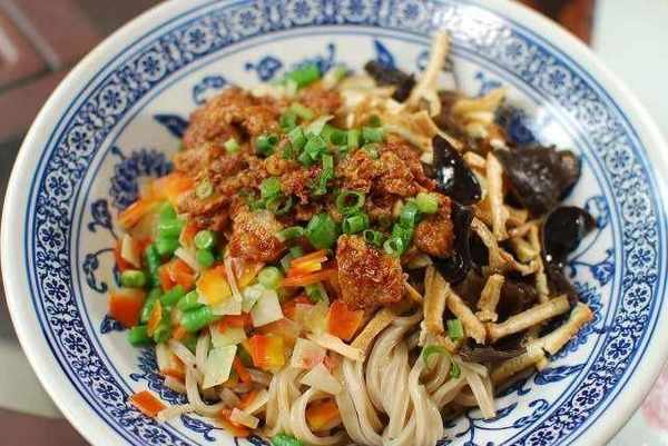 这是陕西随处可见的干拌臊子面,市场价10-12块,不论是配料还是面条,看上去都要比68一碗的羊肉面豪华很多。一般陕西的所有面馆都可以加料,素臊子加一份3-5块,肉臊子加一份8-10块。如果你点一碗10块钱的面,就是把碗加满,可能也花不了68吧?