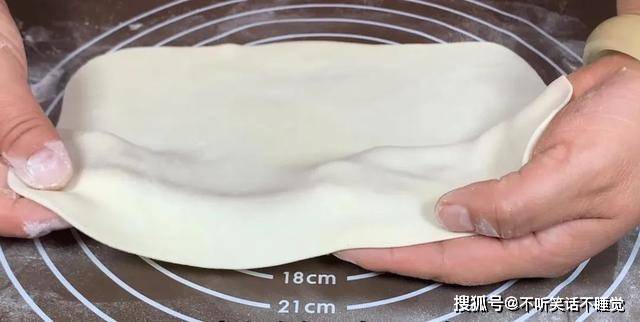 14.接着用擀面杖擀成这样,大概一毫米左右厚度的薄面皮。