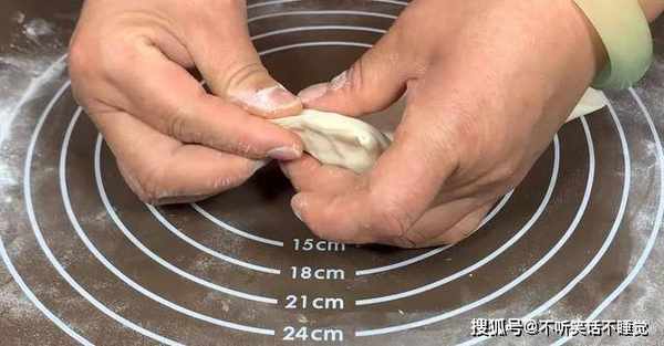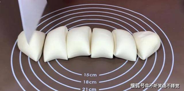 12.取出醒发好的面团,搓成长条,再分成均等大小的面剂子。
