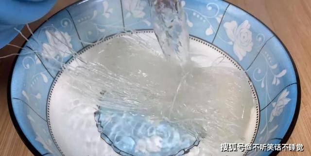 5.碗中放一把龙口粉丝,倒入温水,浸泡10分钟,将粉丝泡软。