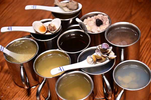 迷你小心烫(肉茸、苦瓜沙蛤、橄榄肉茸汤、黑蒜文蛤)、胡椒猪肚杯,用杯装的汤,喝起来很方便,汤汁真材实料香浓醇厚,喝上一杯无比惬意,要小心烫哦!