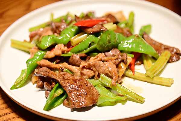 爆炒猪杂,炒的火候滋味恰到好处,很有水准,配饭配酒都很赞!