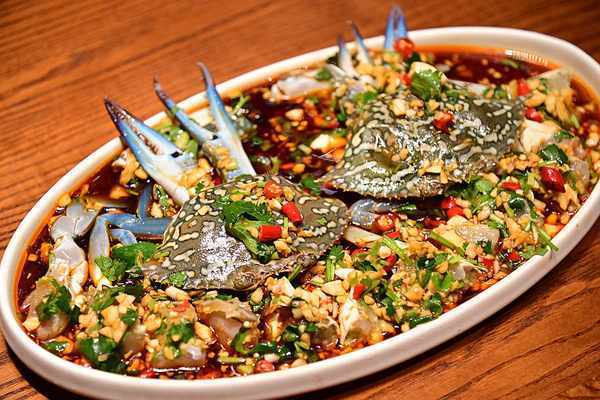 生腌青脚蟹,大大一盘真材实料,蟹肉新鲜饱满细嫩幼滑,腌制入味鲜甜美味,赞不绝口!