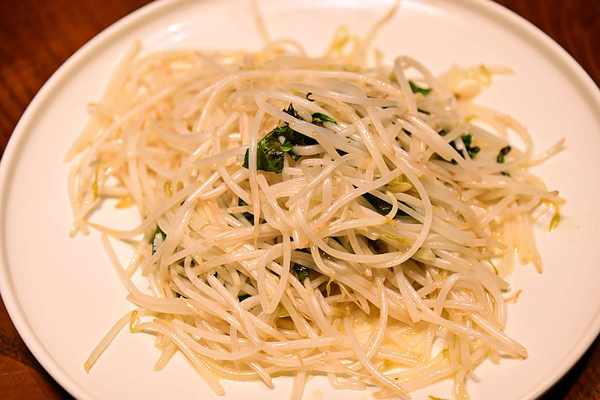 九层塔炒豆芽,豆芽的清香和九层塔特有的浓香完美融合,锦上添花。