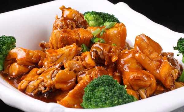 2、炒锅倒油,加上鸡肉炒到金黄,再把香菇倒进去,用料酒、生抽、老抽调味后,倒入适量的水,没过鸡块。大火煮开后,转中火炖20分钟,再把胡萝卜倒进去,接着炖15分钟后,放入盐和鸡精调味,再用大火收汁,出锅。