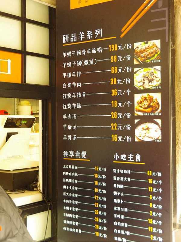羊棒骨看起来好诱人,可一根36,赶上前面两碗的价啦,舍不得。 生活不易,量入而出