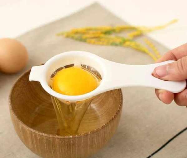 2、把3个鸡蛋分别敲开去壳后放入A盆,注意不要把蛋黄弄破了。