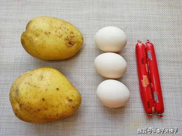 1、准备土豆两个,鸡蛋两颗,火腿肠两根,食材非常简单。