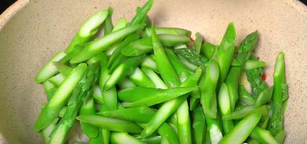 第1步、首先把芦笋清洗干净,然后斜刀切好就可以了。