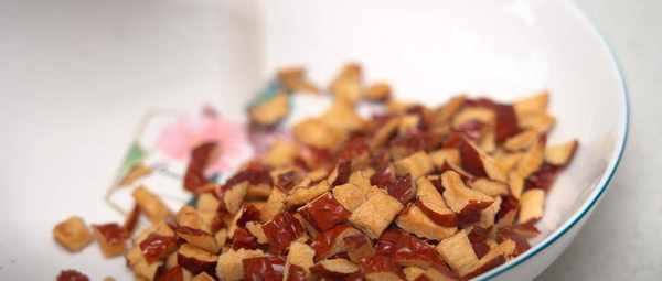 第2步、然后再准备点红枣,去核将其剪碎备用。