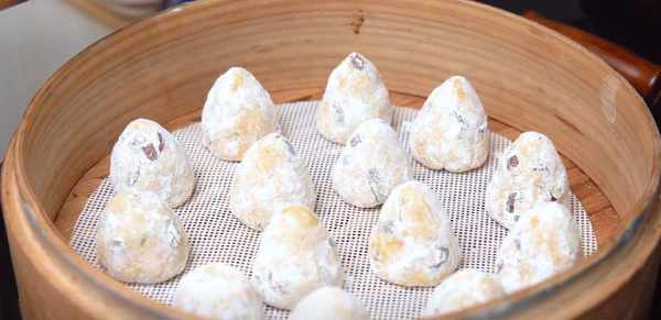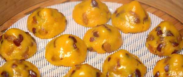 原料:红薯,红枣,葡萄干,糯米粉,面粉