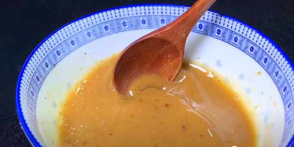 第4步、再准备一碗料汁:2勺生抽、半勺香醋、一勺蚝油、少许食盐、少许白糖、一勺淀粉、小半碗清水,搅拌均匀备用。