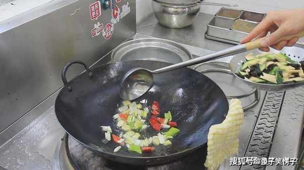 现在我们开始烹饪,锅内烧油,倒入葱姜蒜和青红椒一起翻炒。