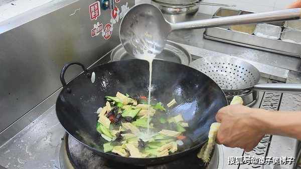 ,快速翻炒化开调料以后,加入适量的清水,快速翻炒几下。