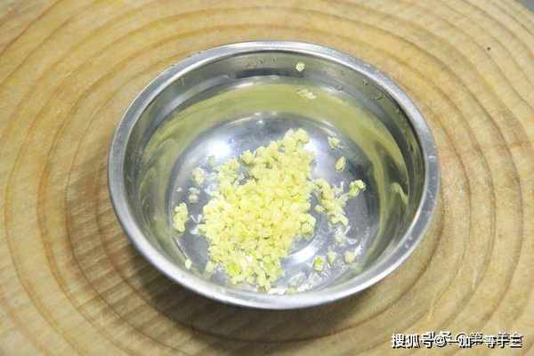 大蒜几粒,拍扁以后切成蒜末放在小盆中。