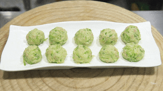 把丸子尽量团的圆一点,放在盘子里面,一个一个都团好放在盘子中。