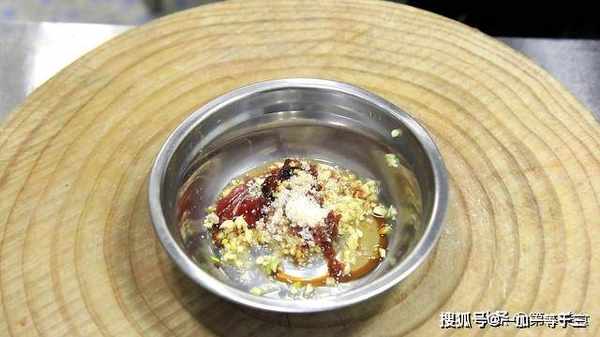 9.蒸丸子的这个时间,我们调一下料汁,把蒜泥中放入