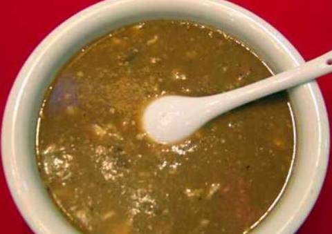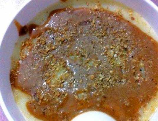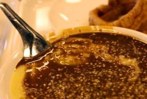 面茶不是茶汤,是黍子面或小米面煮成的糊状物,表面淋上芝麻酱,芝麻酱要提起来拉成丝状转着圈地浇在面茶上。味道另说,讲究的是喝它的方法。老北京讲究喝面茶不用勺不用筷,而是要一手拿碗,先把嘴巴拢起,贴着碗边,转着圈喝,面茶很烫,其实用吸溜更加恰当。碗里的面茶和麻酱一起流到碗边再入口中,每一口都是既有麻酱又是面茶,要的就是这种感觉,这种味道。这绝对是门艺术,非老北京人不可了。