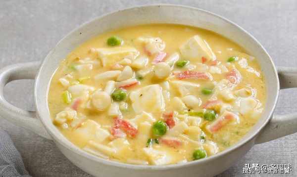 用 料:内酯豆腐1盒 咸鸭蛋 3个 蟹柳 4-5个 冻青豆 1元 海鲜菇 80克 蒜 5克 葱 5克 料酒 1汤匙,盐 少许 胡椒粉 少许 油 适量