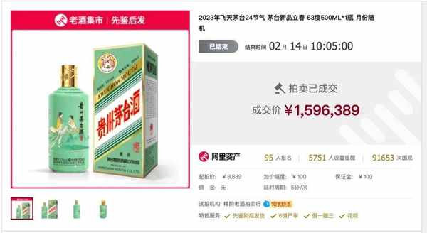 比如,2月中旬,预售阶段的茅台立春节气酒在阿里拍卖平台被拍卖至159.63万元/瓶,在提酒之后,该酒的价格被炒至7000元/瓶,而实际上该酒的官方售价2899元/瓶。单从价格来看,茅台立春酒无疑已经是“奢侈品”了。
