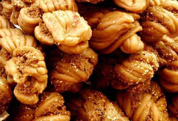 天津点心,跟它们都不一样,始终坚持着自己哏儿透了的审美:大红大绿,花枝招展,从不吝惜青红丝、芝麻、糖浆、京糕条和食用色素,怎么看怎么喜庆,怎么乐呵。天津麻花就是这样——你吃过夹馅儿的麻花吗?