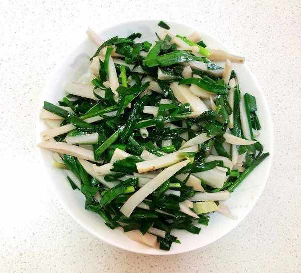 1 韭菜花掐去菜花和老茎,切寸段,尾部的菜花可食,也可不去除,我娘就从不摘去的
