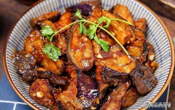 4、锅中留少许底油,下入蒜末炒香,倒入调味汁煮至黏稠冒泡,倒入茄子快速翻炒均匀。